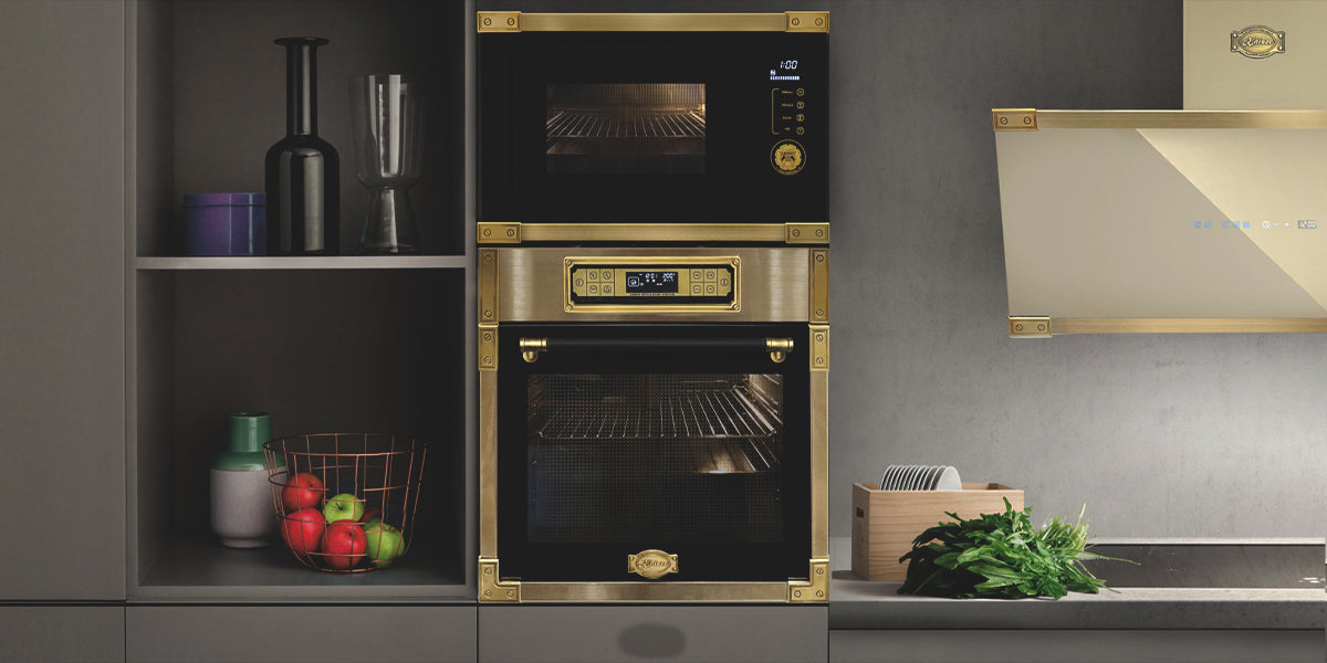 Art Deco Electric Oven & Built-in Microwave Bundle (Black)