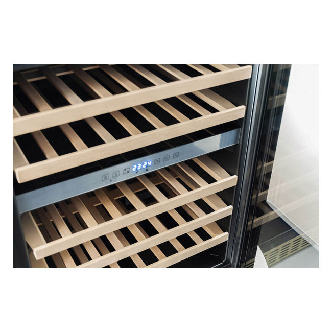 For additional ease of use, and to make sure all details are taken care of, our wooden shelving is easy to pull out. Making it easy to re-stock or view your range of wines. And, our door can be set up to open on either side of the appliance.