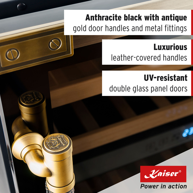 The Kaiser Art Deco Wine Cooler (K 64750 AD). The ultimate in-home luxury. This is the perfect choice for your bar or entertainment area, or within a large family kitchen.