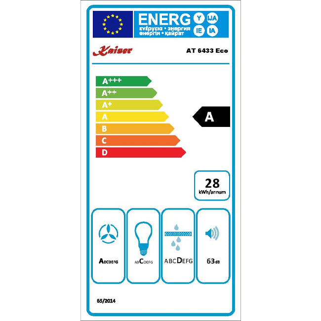 Our AT 6433 Eco - Kaiser Avantgarde Pro 60cm Chimney Cooker Hood. This wall-mounted hood has a clean & modern design, with a blend of high-grade steel INOX, black glass & white glass. Perfect for a crisp new kitchen, or modernising your current style.