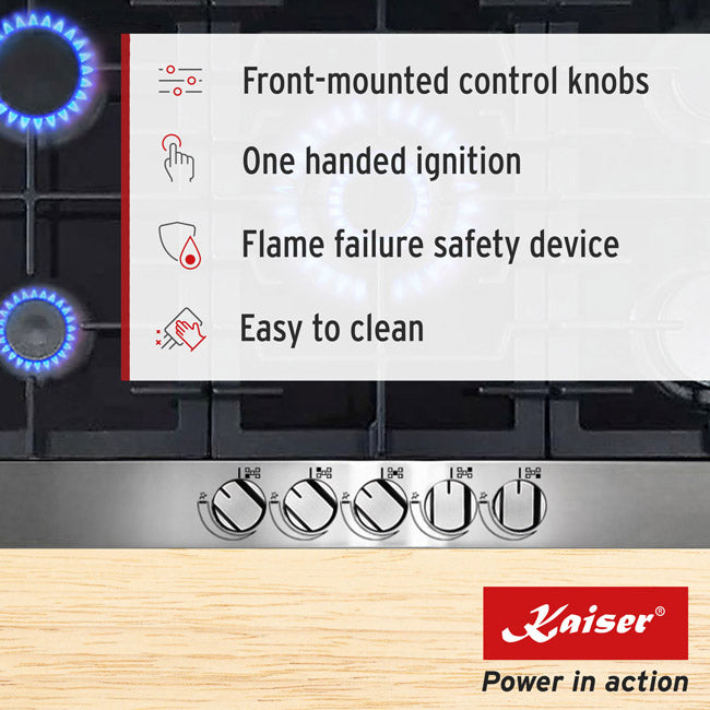 The Avantgarde Pro KCG 9386 Turbo is a high-performance gas hob offering precise control and a spacious layout. Its five burners include a powerful triple Turbo burner for wok cooking, alongside large, standard, and economy burners to suit any dish. Automatic ignition and front-mounted controls keep operation simple and safe.