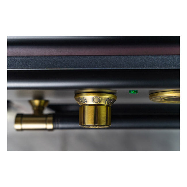 The downdraft system achieves extraction rates of up to 1250 m³/h in exhaust mode or 1000 m³/h in recirculation with carbon filters, ensuring your kitchen remains fresh even during intensive cooking. Finished with anthracite glass ceramic and bronze trims, the hob balances contemporary performance with Empire-inspired style.