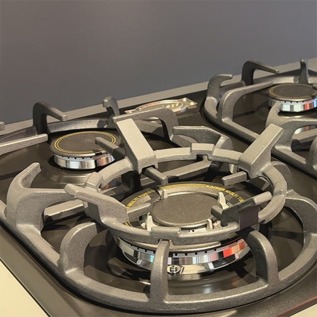 The Kaiser Empire KG 6325 SilEm Turbo. A very traditional style of hob, with gas-powered burners on a gorgeous black enamelled cooktop. The perfect choice for your traditional or farmhouse style of kitchen.