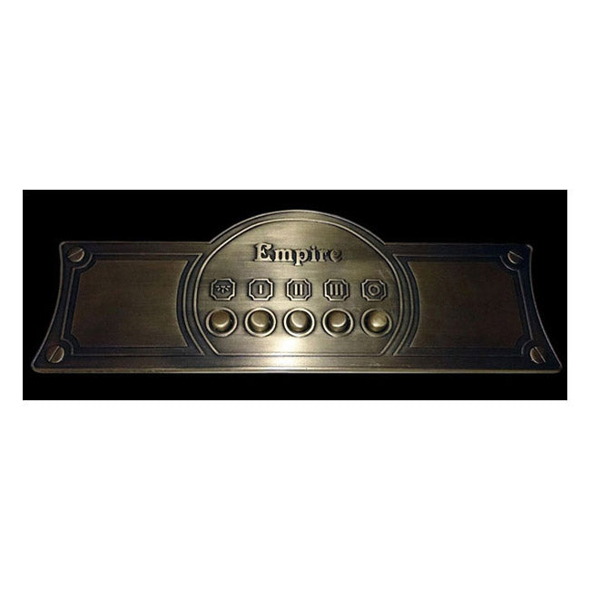• Front-mounted bronze metal control knobs