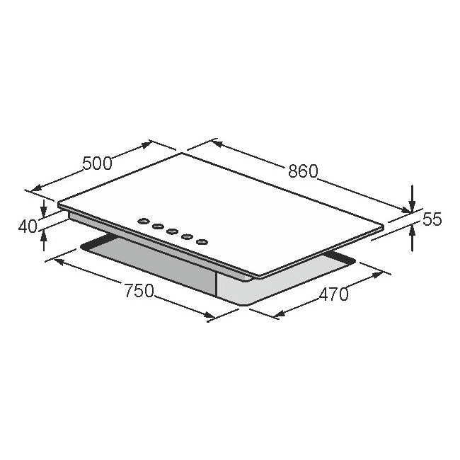 • Hob Dimensions (cm): Hx 5.5, Wx 86, Dx 50