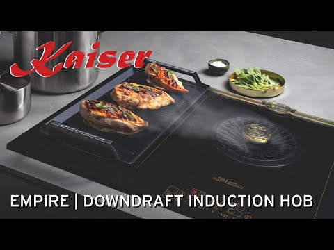 The KCT 9365 IEm from Kaiser’s Empire range is the ultimate space-saving solution for modern kitchens. This 90cm induction hob doesn’t just cook with precision – it also clears the air. At the heart of this appliance is a powerful, built-in downdraft extractor that rises from the surface when needed and retracts discreetly when not in use, preserving the clean lines of your worktop. Whether you’re installing it on an island or against a wall, there’s no need for an overhead hood – giving you complete design freedom.