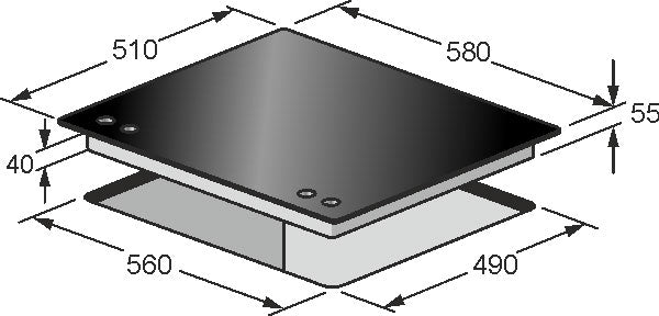 • Hob Dimensions (cm): H x 5.5, W x 58, D x 51