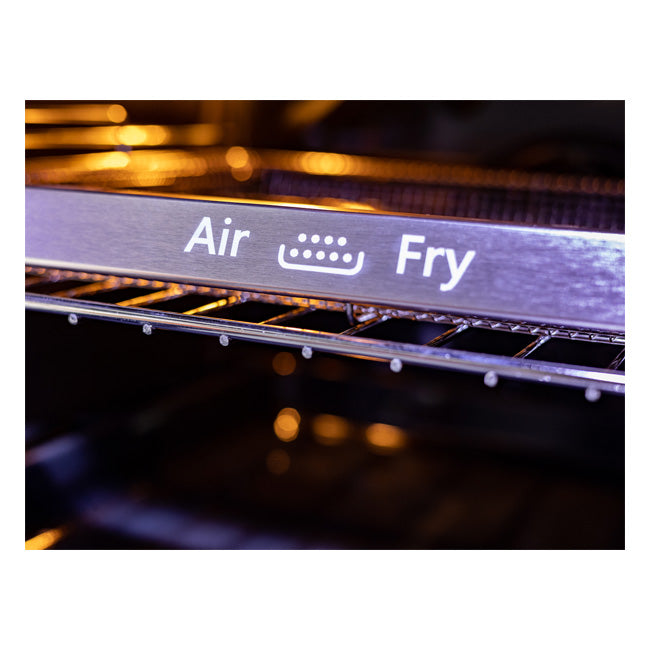 This oven includes a double infrared grill, a food probe temperature sensor, and a fan-assisted cavity. However, our favourite function, and the one that makes this oven stand out is surely the built-in air fryer cooking mode. This completely removes the need of having a stand-alone air fryer appliance on your kitchen counter top. Simply use the included air fryer tray, select the air fryer cooking function and get all the benefits of healthier and juicier cooking straight from your oven. Absolute perfection!