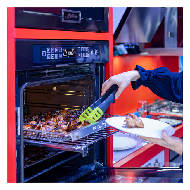 This oven includes a double infrared grill, a food probe temperature sensor, and a fan-assisted cavity. However, our favourite function and the one that makes this oven stand out is surely the built-in air fryer cooking mode. This completely removes the need of having a stand-alone air fryer appliance on your kitchen countertop. Simply use the included air fryer tray, select the air fryer cooking function and get all the benefits of healthier and juicier cooking straight from your oven. Absolute perfection!