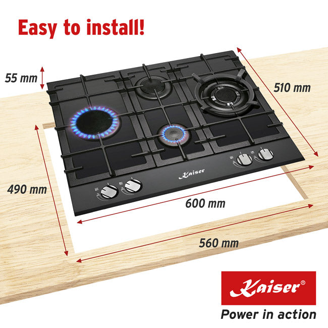 The Kaiser Grand Chef KCG 6394 Turbo Romb. A super stylish, modern style of cooktop from our affordable Grand Chef collection of cooking appliances. This is a gas-on-glass cooktop, with a front bevel on the glass surface to provide a smooth transition between the cooktop & your kitchen countertop.