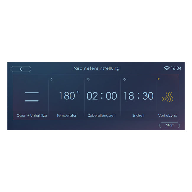 Are you more of a creative cook? Then use one of the main programmes: thanks to the intelligent technology you can set the temperature from 50 to 250°C by steps of 5°C. You may also activate the Delay Start function or set the pre-heating. The remaining time is shown on the multifunctional multilingual TFT-colour display.